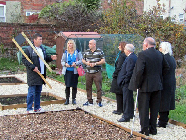 | A small group then visited an allotment that is used in the project to enable clients to develop a number skill to help with recovery. |