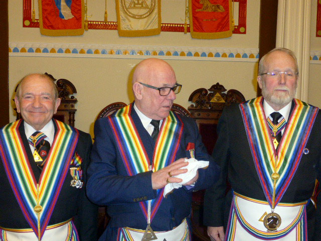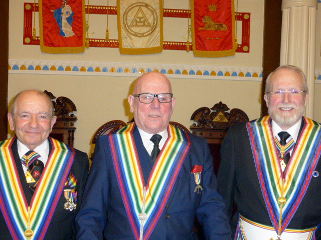 | PGM RWBro Keith Beardmore; Worshipful Commander  Br Ian Elsby; APGM WBro Ian Nairn |