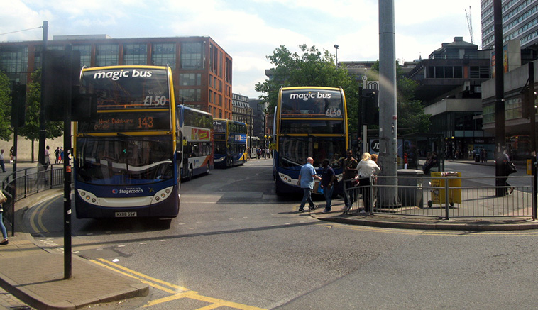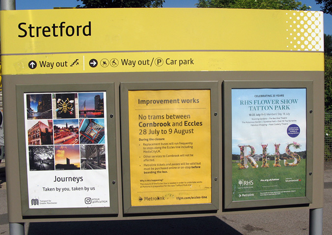| First part of the trip was by bus which soon arrived taking us to the Stretford Metrolink Tram Station, once there the electronic signs keep you well informed, it is really a great way to travel if you are lucky enough to have a station not too far away from where you live. Four minutes and one arrived from Altrincham, destination Bury, flashed the card at the electronic reader and off we went, two nice seats just sit back and relax. The trip takes about forty minutes and is really interesting, it passes the ground where that other team play, then Old Trafford the home of Lancashire Cricket Club, next is an interchange for trams to Media City, Lowery Centre, Eccles (home of the cakes) and the Airport, before too long you go down on to the streets of central Manchester, passing G Mex (the old Central Station) now known under the posh name of the Manchester Central Convention Centre used for Political Party meetings among other things as well as programmes such as Ninja Warrior not much difference really. Next you pass the Bridgewater Hall home of the wonderful Halle Orchestra and many concerts of all types, this year including, Sir Cliff and Duane Eddy, yes Duane Eddy “Because They’re Young” Rebel Rouser” I must be getting old. You soon arrive at the centre of the city Piccadilly before passing down Market Street and right towards Victoria Station and the sad entrance to the Manchester Arena which I’m sure we all remember only too well. From the City its off out into the country, Heaton Park, Prestwich, Besses o’ th Barn, Whitefield, Radcliffe and Bingo you’ve arrived at the Bury Interchange. |