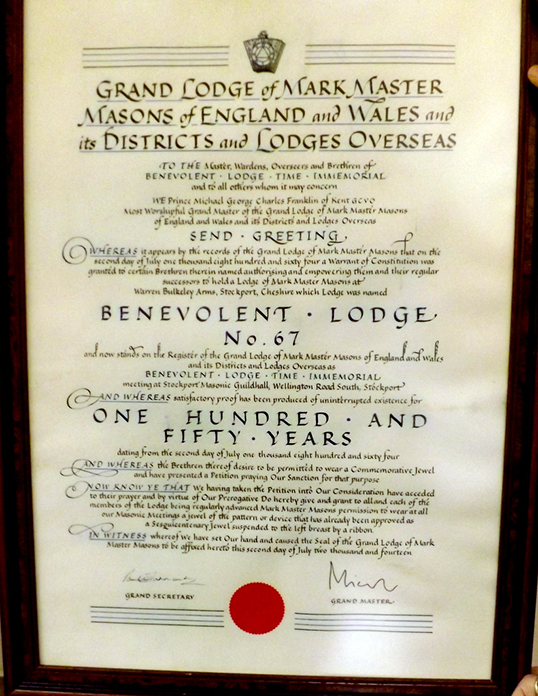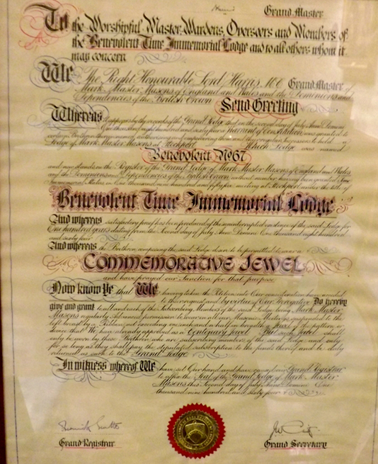| Benevolent Lodge  of Mark Master Masons..    Constituted  Time Immemorial. |
