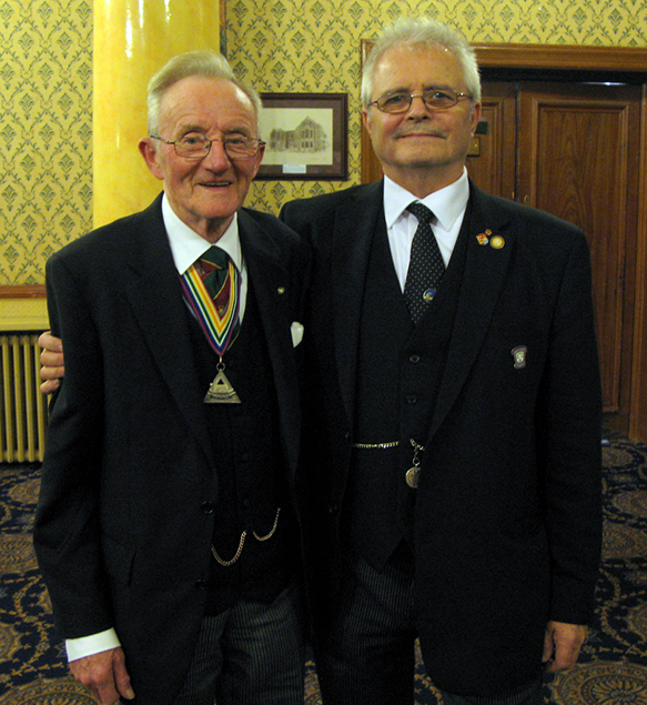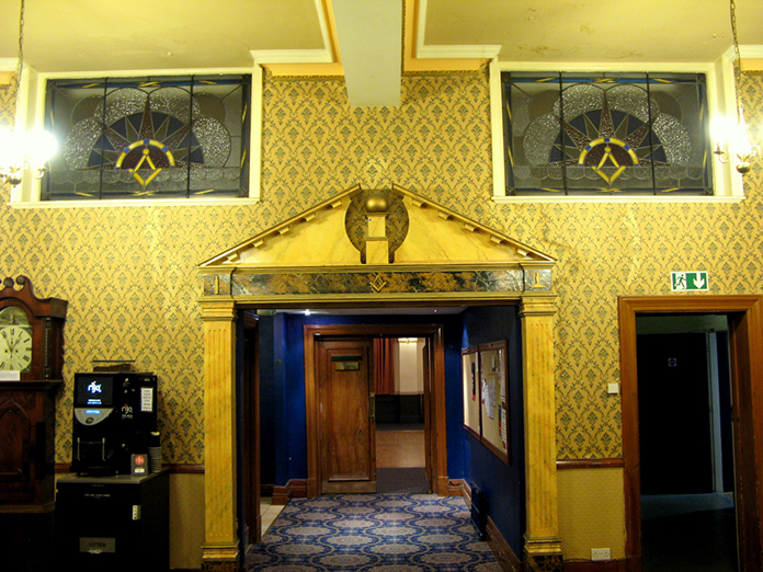| You now enter the hall via the back door as the impressive front entrance never seems to be open any longer, the hall has seen hard times but is at present fighting back under a small team of dedicated volunteers, the last few times I have attended I can physically see many improvements. I can remember singing there at Ladies nights 20/25 years ago in the big ball room, and attending a few meetings in a large first class lodge room before dining in a smart dining room, I guess that just like the Temple at Bridge Street in the centre of Manchester now mostly sold off and meetings only being held in one part of the building, and likewise even our own Hall at Leyland is going, what can be said, just like the song “Oh the times they are a changing”. |