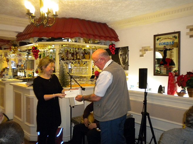 | After enjoying the Greek Banquet laid before them & the entertainment the Worshipful Master of Temple Lodge, Bro John Bruffell PPrJGD (Corinthian Mark Lodge) formally welcomed all to the evening as we reached the important part of the evening – the presentation of cheques in relation to the 2018 Bike Ride between Liverpool & London. | |||
