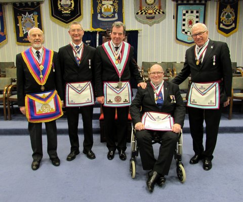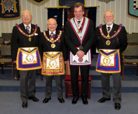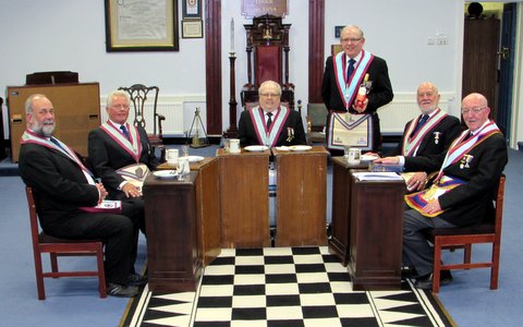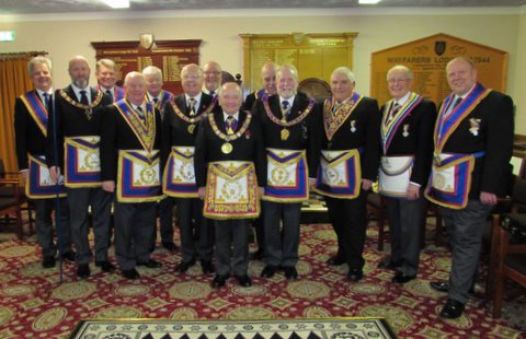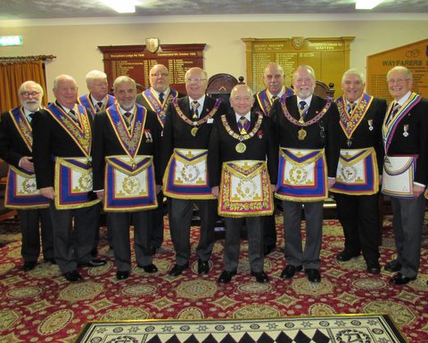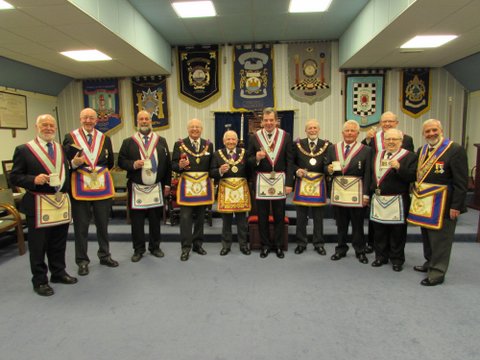 | After the first rising the Provincial Grand Director of Ceremonies formed a procession and the Right Worshipful Provincial Grand Master and his Provincial Officers along with the Grand Officers retired. The Worshipful Master completed any other business and then closed the Lodge. The Brethren vacated the Lodge Room to enable photographs to be taken of the occasion. Having taken the photo-shoot, we repaired to the lounge bar for a well-earned refreshing aperitif. |