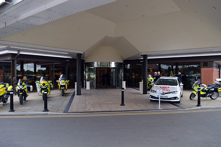 | On arriving at the Conference Centre the focus of the event was clearly evident ref.photo.1 and after registration we joined the other representatives from Provinces far and wide, and representatives of the various Blood Bike organisations who were being presented with the “keys” of their machines. |