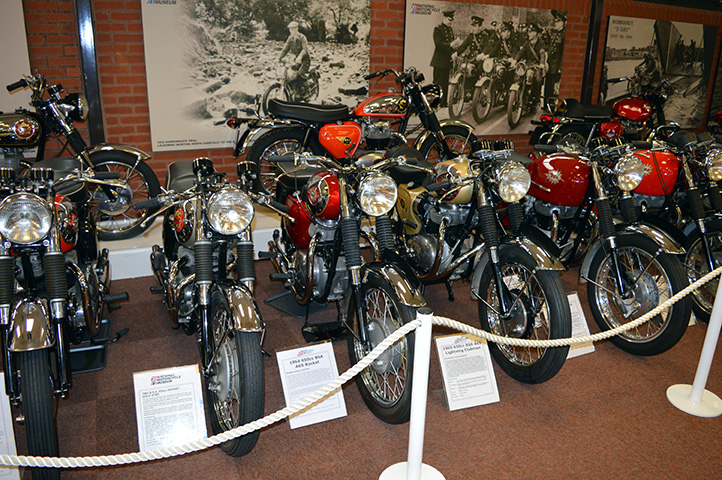 | Inside the National Motorcycle  Museum. The author's second motorbike is third from the left. |