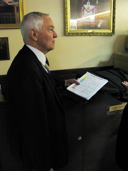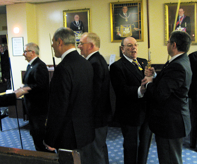 | Not many hold ups and arrived safe and sound at Wellington Park, received a welcoming greeting from the Prov DC W. Bro. Dave Emmerson who was at the door getting some fresh air, (well that’s what he told me), climbed the stairs, shook the rain off before making my way to the Lodge room to find it all in good order and already set up for the meeting. Members and visitors alike soon began to arrive, lots of genuine happy to see you handshakes, greetings and chat from all over the Province. It was really good to see that not only the PGM was in attendance but also his Dep PGM and his two Asst PGM’s, it just goes to show how important these Festival Meetings are, you can never tell what they are going to be about but one thing which for sure is that they are full of fun and if you haven’t made it to one of them so far when the next one comes along make a note in your diary and make a special effort to get along and see it for yourself. |