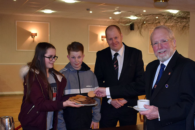 | Following their journey north, or as we like to think of it to the top of the province, the visitors were greeted with a welcoming cup of tea and biscuits. In charge of administering the much needed brews were John’s daughter Sophie and son James. Their cordial welcome proved a perfect start to what was to be a most enjoyable evening. |