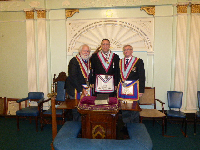 | Time now for the salutations; George Harradon Mark lodge is honoured to have among its membership two Very Worshipful Brethren; these being VWBro Keith Dowell and VWBro Fred Hargreaves and they received the salutation due to their rank and then the rest of the salutations were given. The Master then asked WBro Les Moore to remain as Senior Warden and WBro Tom Marlow, PProvGJW to take the Chair of Junior Warden and WBro Graham Radford, PProv GSD to take the position of Inner Guard for the installation. |