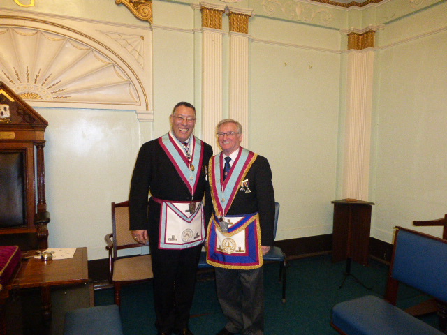 | Part of the lodge business was to appoint a Royal ARK Mariner Ambassador; the lucky recipient was WBro Les Moore, PProv GSW who is the lodge’s Senior Warden. Then it was time for the DC and Deacons to retire and form a procession. The PGM’s representative for the meeting was WBro Derek Horrocks, PGJD and he was accompanied in the procession by WBro Mike Winterbottom, PGSD who is the PGM’s Special Representative for the Liverpool Area and other Grand Offices. WBro Jones greeted WBro Horrocks and hoped that he had a good evening. |