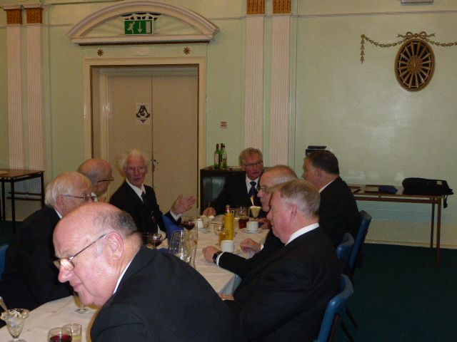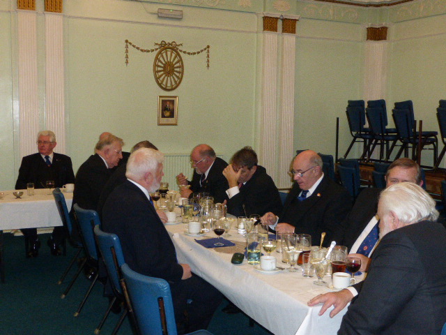 | One of the nicest jobs for a new Master is to give away the Lodges Money and Bro Perez presented two cheques to WBro Horrocks for charity and these were gratefully received. With lodge closed it was time for a very enjoyable festive board. We wish WBro Jorge Perez and George Harradon Mark Lodge a happy and successful year. |
