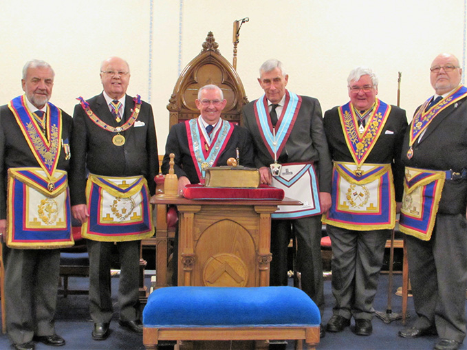 | At 5.00 p.m. the Worshipful Master Michael W. Glover opened the Lodge and completed the items of an administrative nature. On a report the Deputy Provincial Grand Master entered the Lodge accompanied by no less than ten Grand Officers. The usual salutations and responses given and received. The Worshipful Master invited, Worshipful Brother Brian Ogden a Past Master of Fylde Mark Lodge to occupy the Senior Wardens chair, Brother John Chapman Worshipful Master of Bispham with Norbreck Mark Lodge to occupy the Junior Wardens chair and Brother Dave Kenwothy Worshipful Master of Semper Fidelis Lodge to occupy the position of Inner Guard, and act as Installing Officers. |