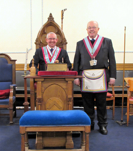 | Bro. Dave Kenworthy W.M. Semper Fidelis, W.M. Clive Gitsham Imperial |