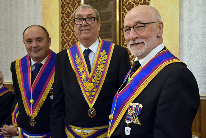 | Making his debut as a representative of the Provincial Grand Master was Grand Steward Graham Corday. Also in attendance was Grand Senior Deacon David Rotherham along with many other distinguished Grand officers. |