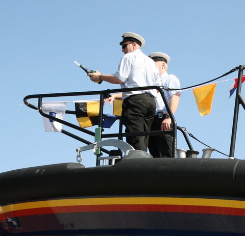 | The lifeboat was officially handed to the R.N.L.I. and the Operations Manager accepted it on behalf of the crew. |