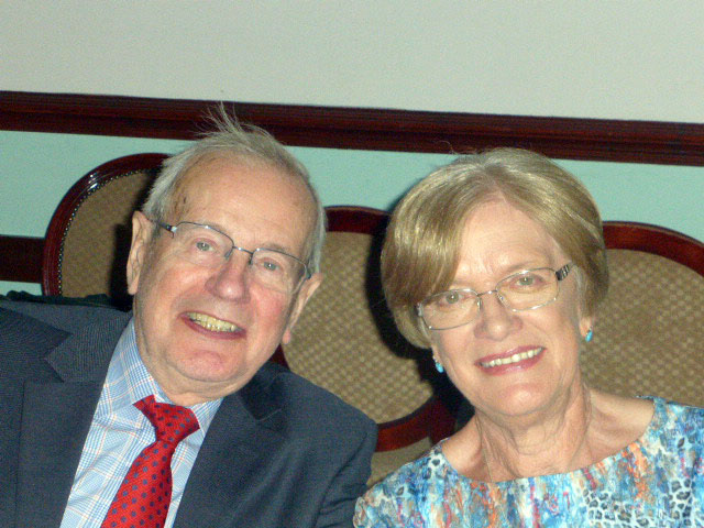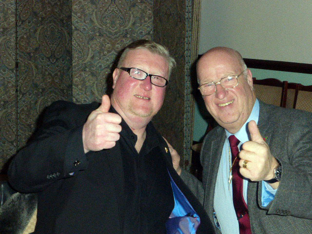 | Keith and his wife also led the dancing during the evening and the PGM even obliged with a photo to satisfy someone’s strange sense of humour. (Many thanks.) As with all Masonic events besides having fun, the aim is to raise money for charity and this was successfully done on the night; even though somebody broke the raffle ticket barrel. (I didn’t, it fell to bits in my hand!) |
