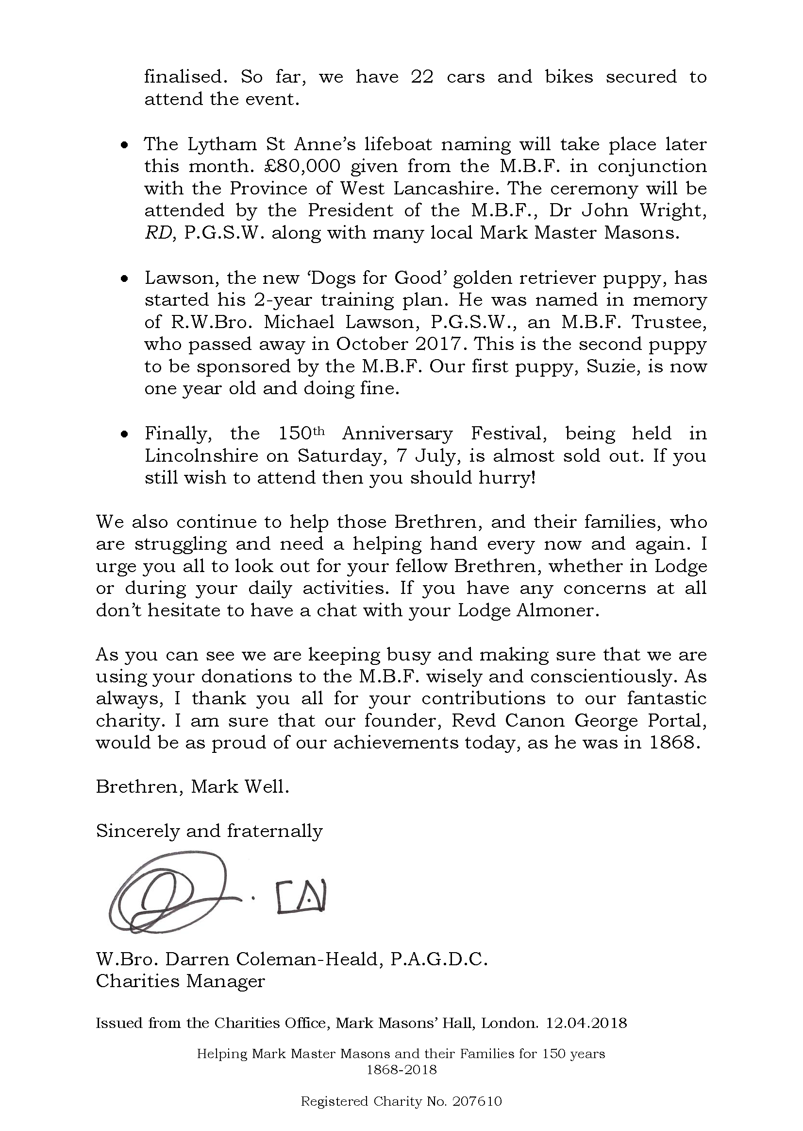 MBF Quarterly Update April 2018