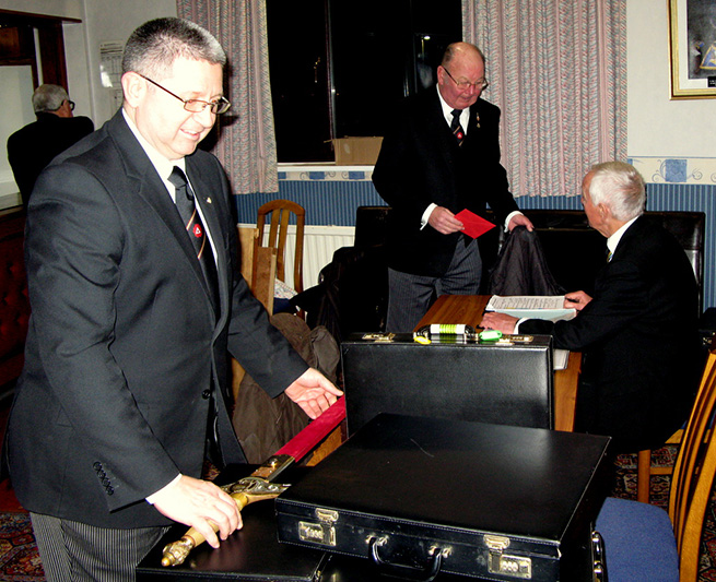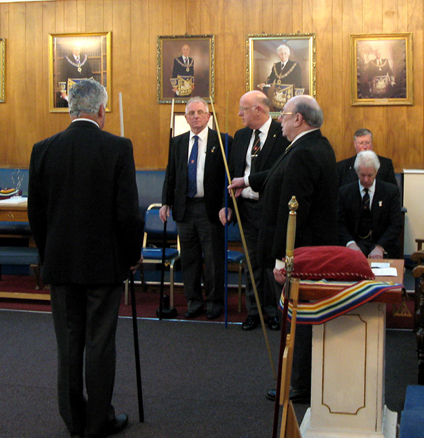 | Bro. Neil Cooper was Elevated in fine style in a ceremony which I am sure he will long remember, On completion the PGM Keith was pleased to congratulate the WC Clifford and his officers for the excellent display of the ritual making special mention of W.Bro. Rawcliffe’s presentations. The WC on behalf of all the Lodge members then offered the PGM an envelope which contained a magnificent cheque in the sum of £1019 for the Charities which Keith thanked him for and said it was an outstanding amount and would be well received by all who would benefit. |