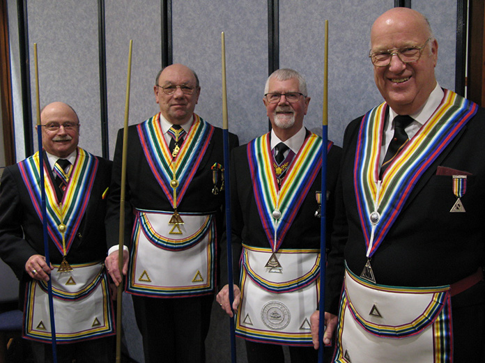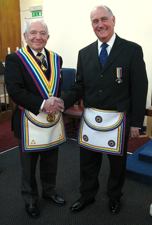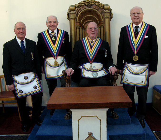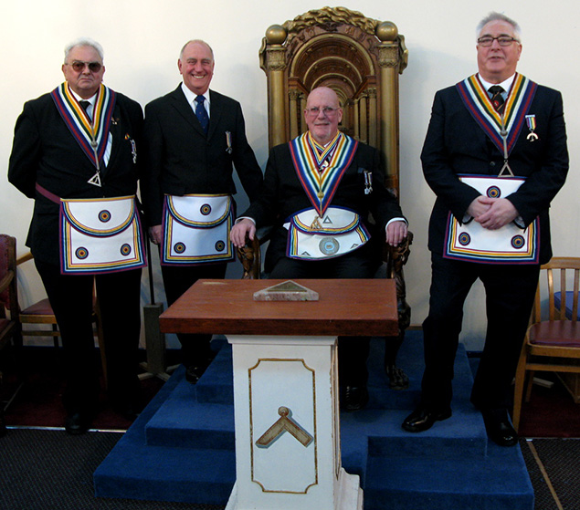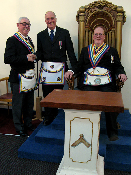 | The meeting commenced on time at 6pm, quite a few items from the summons were dealt with including a ballot for a joining member, then it was time for the RW PGM Bro. Keith Alan Beardmore RAMGR to enter accompanied by Acting Grand and Prov Grand Officers, the was greeted by the WC Bro. Clifford Boynton who offered the Gavel which on this occasion Keith said he would accept for a short only as he was aware that the WC and his officers were really looking forward to carrying out the ceremony of Elevation. Once the members of the team and other distinguished officers had been introduced to all present the Gavel was quickly handed back, whew. |