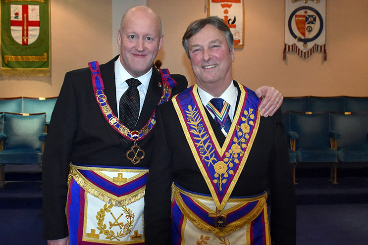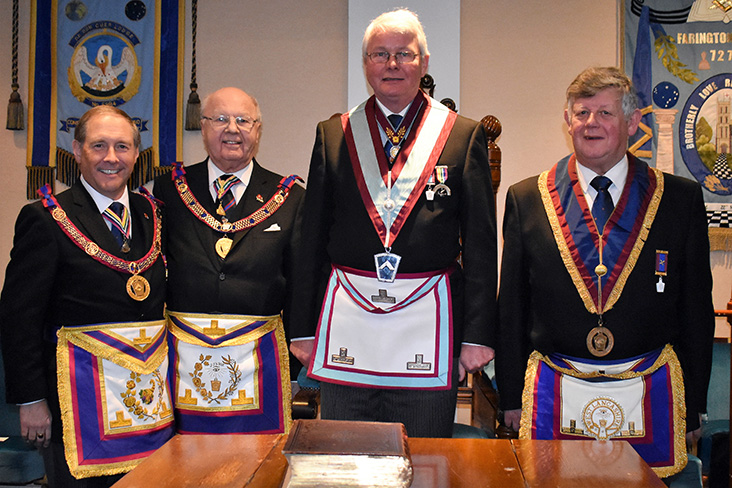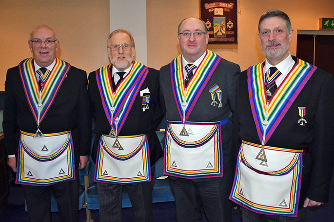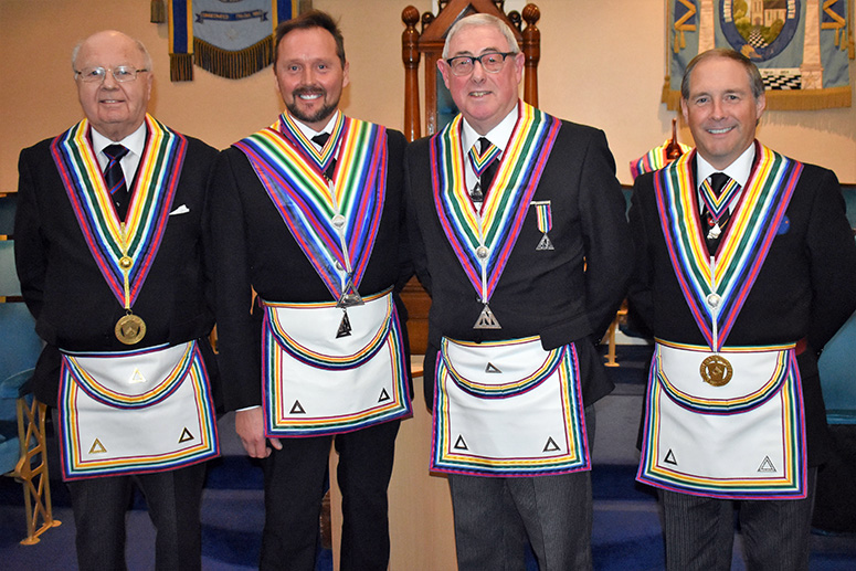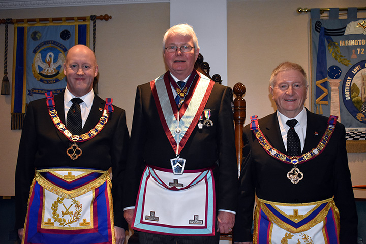 | The principal guest was Deputy Provincial Grand Master Geoffrey Lee who was accompanied by Assistant Provincial Grand Master Giles Berkley with Provincial Grand Director of Ceremonies David Emmerson on hand to keep a careful watch on proceedings. |