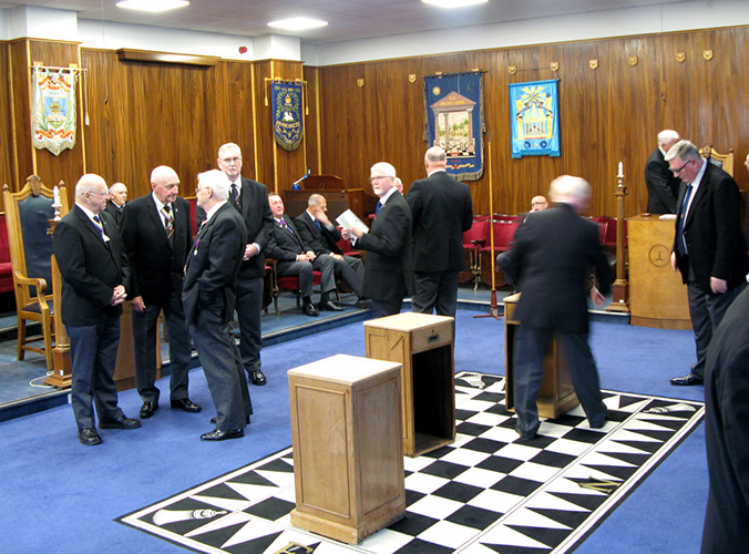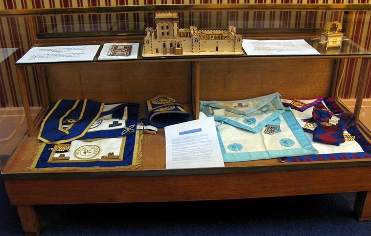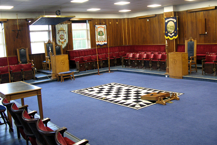 | The upper floor is a maze of passageways leading to several Lodge rooms, storage cupboards, robbing rooms and toilets. The meeting was in the large Temple which is really well appointed and personally I always find it a joy and privilege to be at a meeting in this room. |