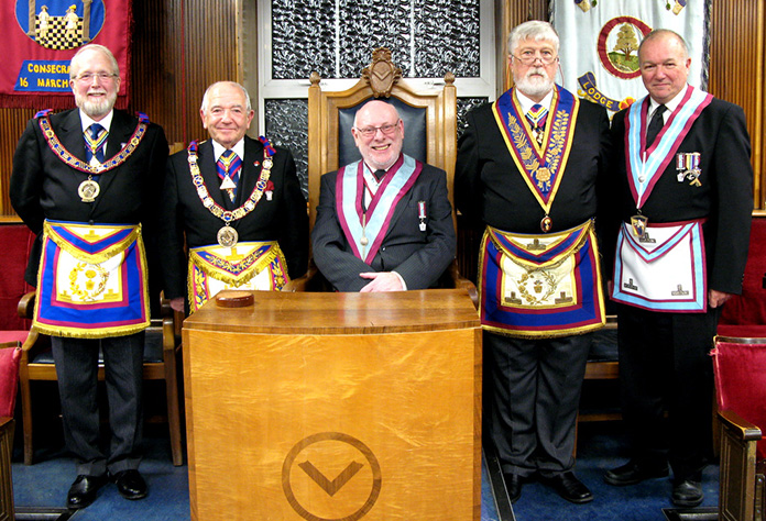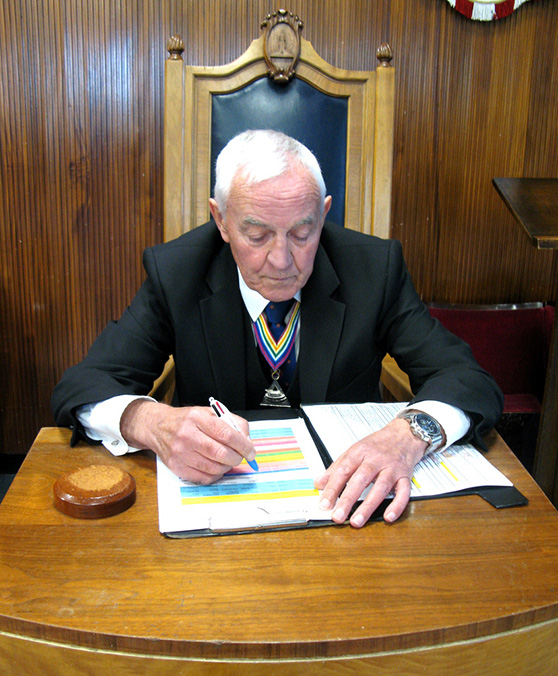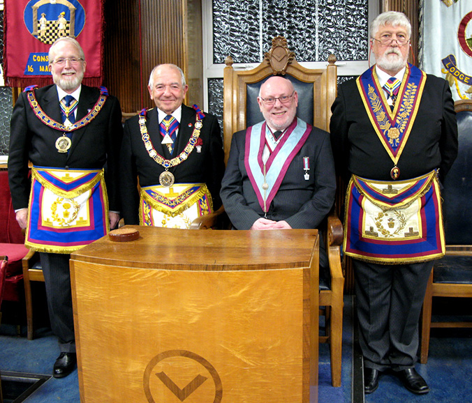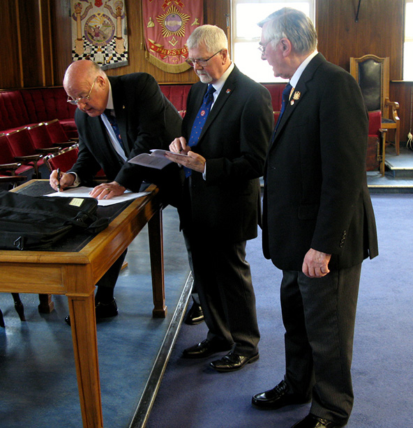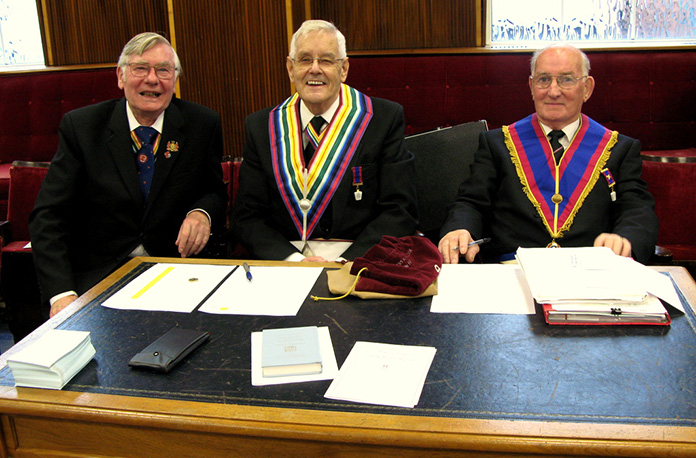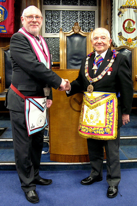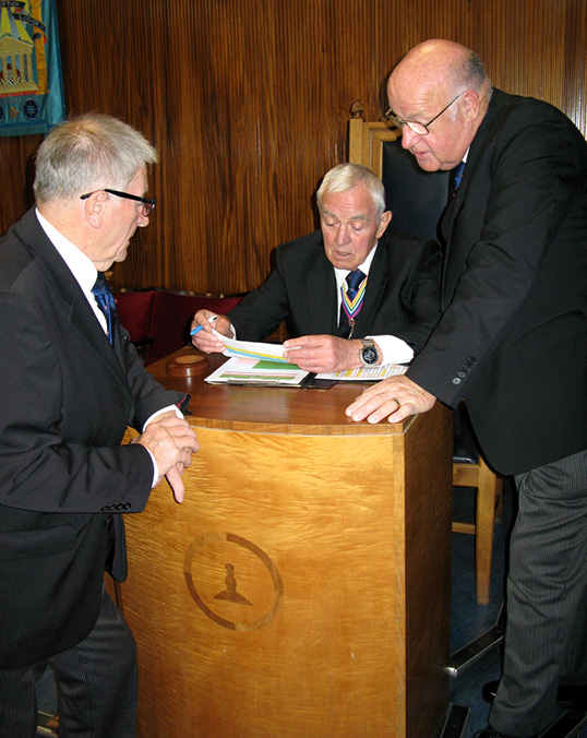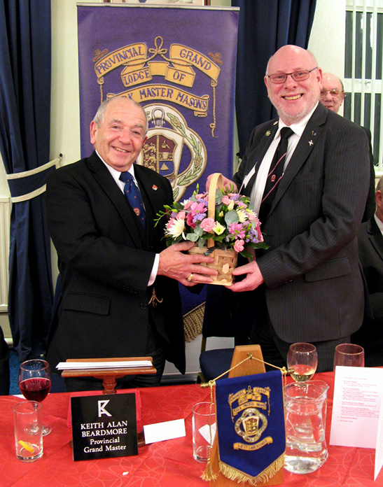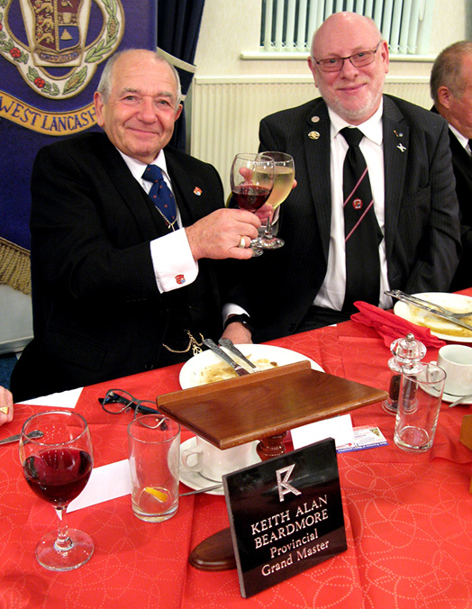 | The Meeting opened on time at 6pm, usual housekeeping was dealt with then it was time for the PGM RW Bro. Keith Alan Beardmore to enter accompanied by Acting Grand and Provincial Grand officers, the Gavel was offered by the WM Bro. Raymond Thompson and on this occasion the PGM accepted it on the proviso that he would hand it back as soon as he had introduced his team of officers because he knew that Raymond was eager to carry out the Installation Ceremony himself. |