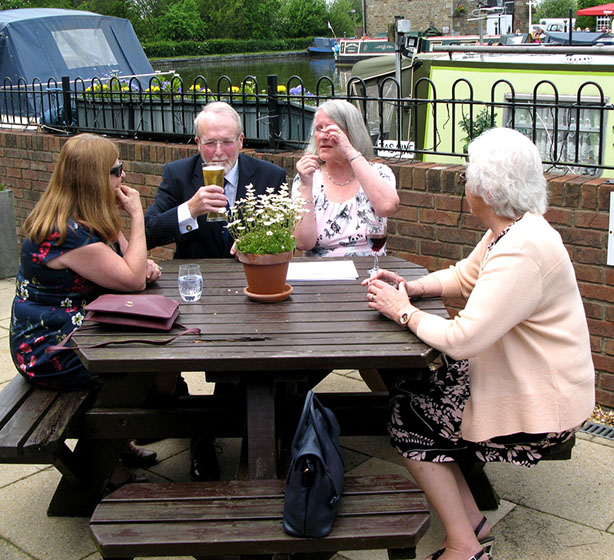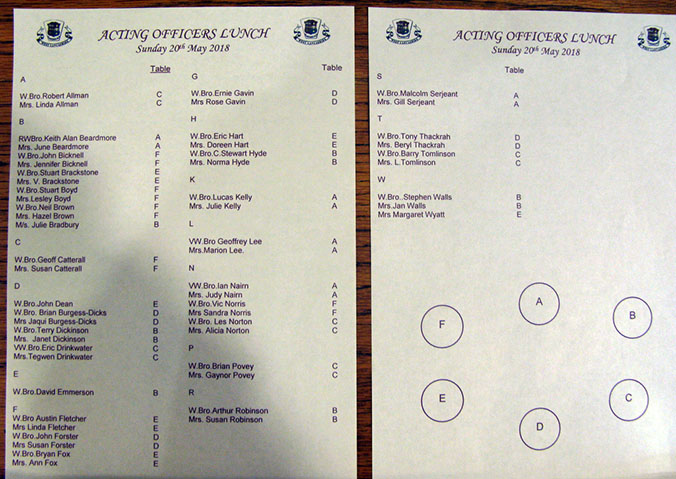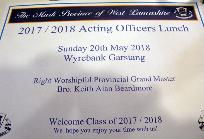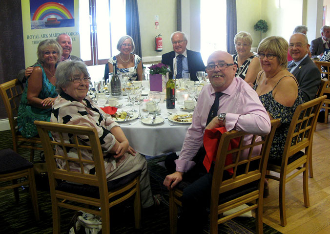 | What more could you want, a lovely sunny Sunday morning and a very pleasant event to look forward to this afternoon, the now traditional annual lunch organised by the Provincial Wardens to get the outgoing team together for the last time with their wives, partners and friends, the location, idyllic Garstang Masonic Hall which is situated on the banks of a huge canal basin complete with its many different types of boats and barges, peaceful and tranquil. As guests arrived from all over the Province they charged their glasses and made their way to the outside seating for a good old chinwag (not sure if that’s a real word) in the fresh air before being called back inside to take up their allotted places for the dinner. |