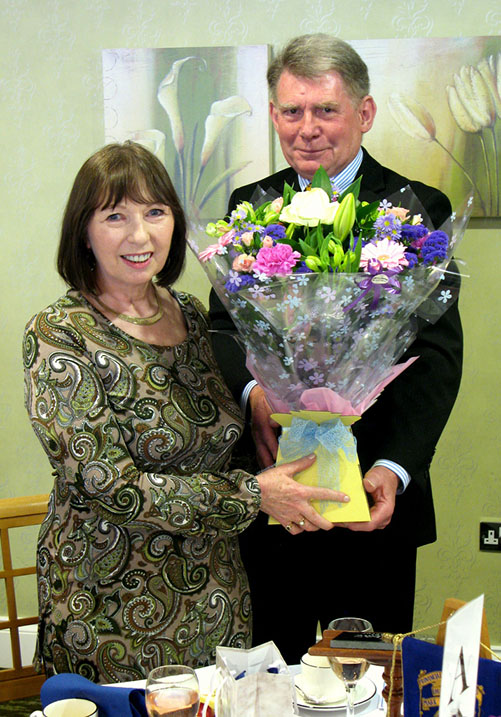 | At the close of the meal the Provincial JW, W.Bro.Vick Norris was delighted to present the PGM’s Lady, June with a lovely bouquet as thanks for all her patience, understanding and kindness in allowing Keith to attend so many meetings of which we the members of the Mark Degree are really appreciative. |