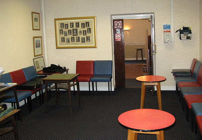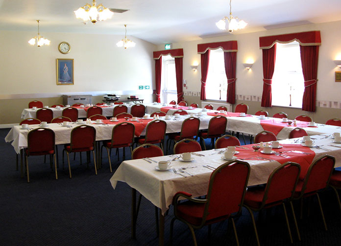 | Stood in the nice warm sunshine and eventually a chap appeared from inside the hall and opened up, the first room you enter is the cosy bar with plenty of welcome seating, turn right and you find yourself in a wide corridor, to the left is the well presented Lodge Room and straight ahead another room with plenty of seats and tables for Regalia cases, carry straight on and you walk into the dining which was set up in excellent style for the Festive Board. |