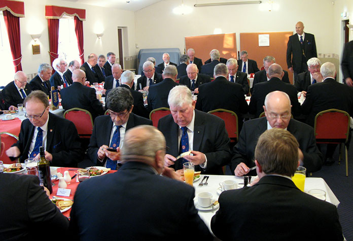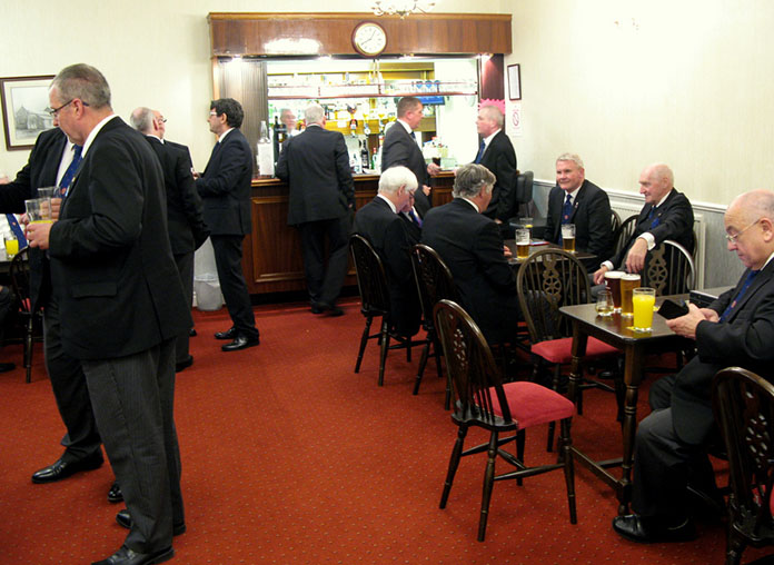 | Soon members and visitors began to arrive all with a smile and genuine handshakes of happy to see you, for those who wished there was coffee and tea or a longer drink from the bar, served up by a member of the Lodge. |