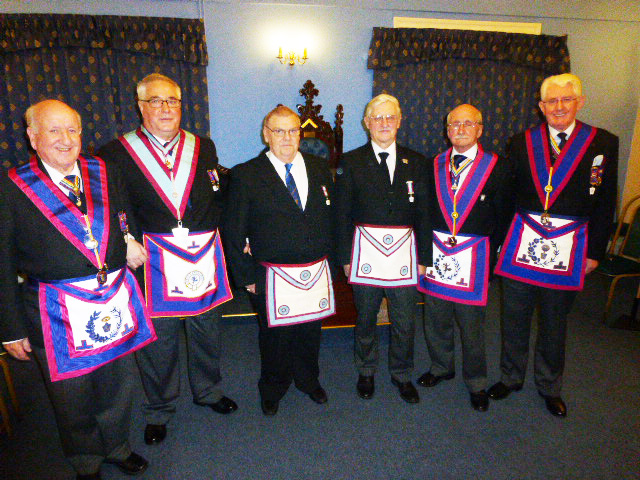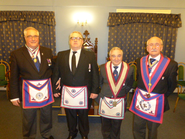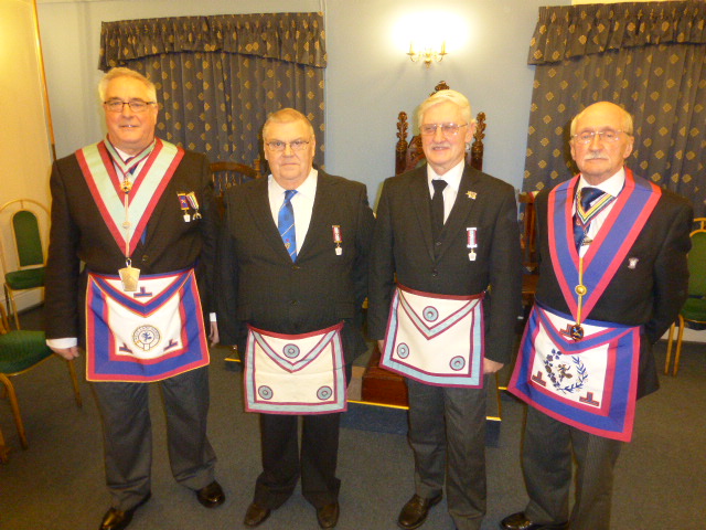 | The rain on Tuesday 18th December may have kept the golfers off the golf course, but it did not deter the members of Temperance Mark Lodge No774 from turning up for their end of the year meeting. With a the following visitors filling the chairs of; Master Overseer; VWBro Eric Hughes, PGJO; Junior Overseer, WBro Stuart Boyd, PPrGSW and WBro Graham Radford, PPrGSD acting as Junior Deacon; The Worshipful Master, WBro Derek Gaskell, PPrGJD, opened the lodge on time, (more or less). |