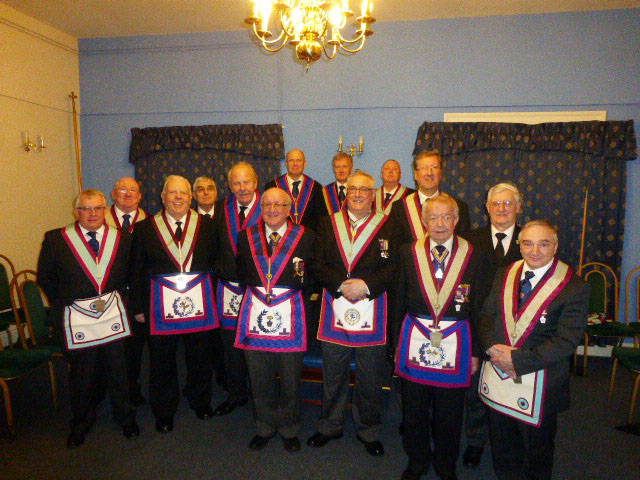 | This is the ‘fun degree’ and so it all ended well. The ceremony flowed well with the whole team working well together. After the ceremony the Master asked the Secretary WBro David Anderton PJGD to record his thanks to all the offices that had taken part in the ceremony and how proud he was of all the hard work everyone had put to make it such a good ceremony. He also expressed his thanks to WBro Bryan Humphries and VWBro Eric Hughes for kindly assisting in the ceremony. During the risings the Master offered on behalf of himself and all members of the lodge congratulations to Grand Officer designates Worshipful Brothers Andy Whittle;Tony Cross, both of whom have PAGDC and Graham Sinden PAG Std.B Br. and also to WBro. Mel Cross on his promotion toPGJD. |