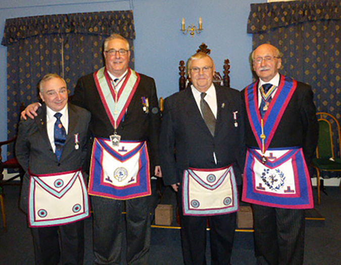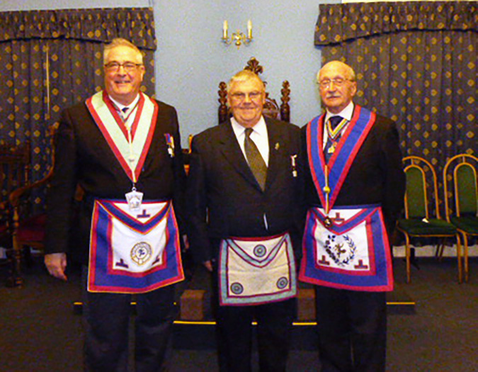 | Senior Deacon Bro Bob James with WM, Bro Aitken and  Mike Winterbottom |