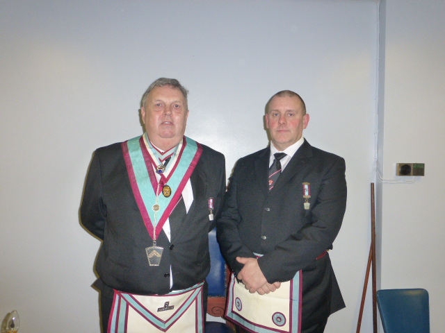 | Like all good festive gatherings there was fun and a little bit of villainy and a little bit of drink. The Worshipful Master, WBro Sandy Kean Prov GStB opened the lodge and got through the general business of the lodge. This had included the balloting for a joining member Bro Gil Smith. With the ballot proving successful Bro Smith was admitted into the Lodge. It was now time to admit the representative of the RW Provincial Grand Master, WBro John Bicknell, PGJD; Prov Grand Sec who was accompanied by WBro Mike Winterbottom PGSD the PGM’s Special Representative and other grand offices. |