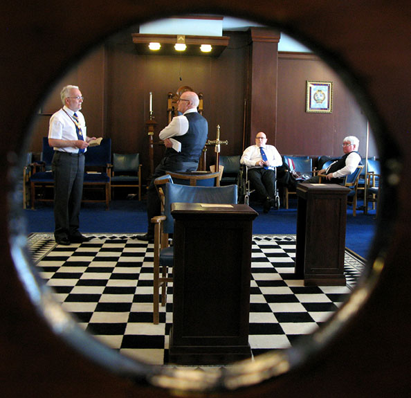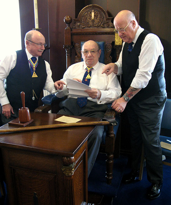 | I made my way back to the hall to have my usual mooch around and take some photographs and in no time at all Lodge members and Prov Team members began to arrive, the one and only Prov DC Dave Emmerson assisted by his Asst DC’s began to plot out the Acting officers who would be required for the meeting and then it was practice time. Once the DC was happy he told them not to wander too far and of course not to commit the unwritten rule “Do not leave your wands in the Lodge” on pain of having to buy the DC a pint. | |
