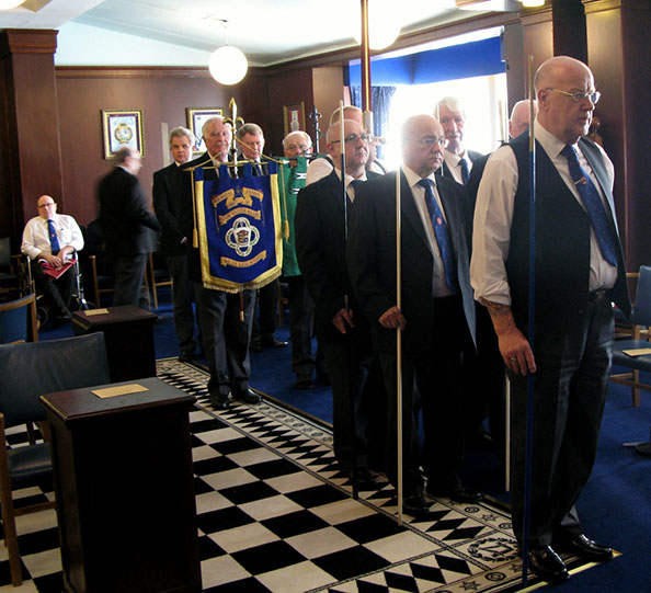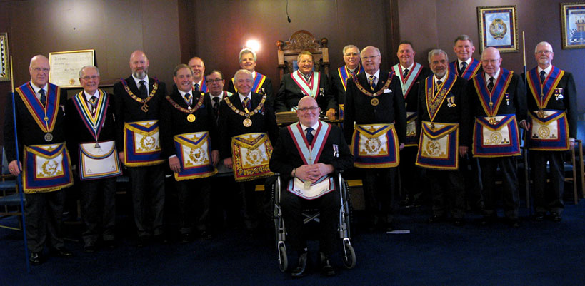 | The time had arrived for the PGM to retire from the Lodge accompanied once again by Acting Grand and Prov Grand Officers, what a difference it makes to have a wonderful musician in attendance, Shaun Haynes the Prov Organist who attends most meetings, the rest of the summons items were dealt with, one of which was a proposal for a new Candidate, let’s hope they get many more. A quick photo shoot followed as is usual and I met a really pleasant man W.Bro.Bob Boal whom I believe does photos and reports for that other degree, (and Ours Webman), a nice guy. | |