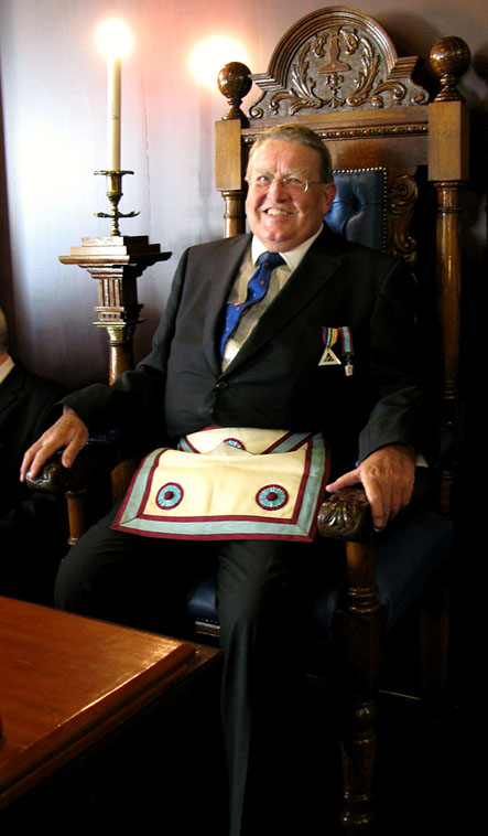 | The Master Elect trying the chair for size | |