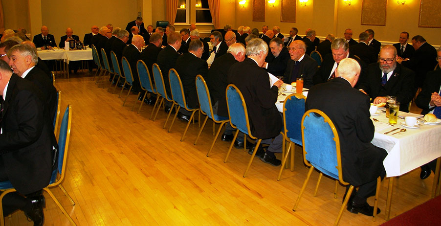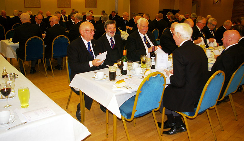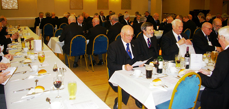The two non Mark Masons retired and the ceremony props were removed and the Lodge was put back together as a Mark Masons Lodge. The Lodge was called on again and a collection for Charity was taken. The PGM retired accompanied by the distinguished Grand Officers and Acting Provincial Officers. The Lodge was closed in due form and all 81 brethren made their way to the bar before taking their seats at the Festive Board and an excellent meal was enjoyed by all. |