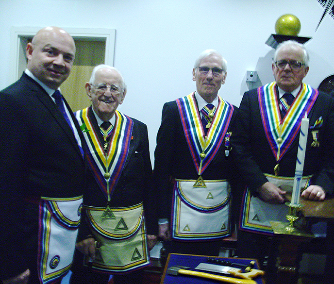 The working tools were presented by Jonathan Platt in an excellent manner with the address to the master completed by Sylvester During. |