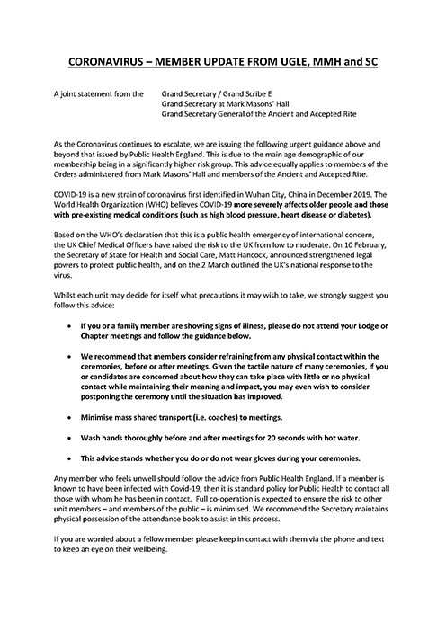 Corona Virus Update 5th March 2020