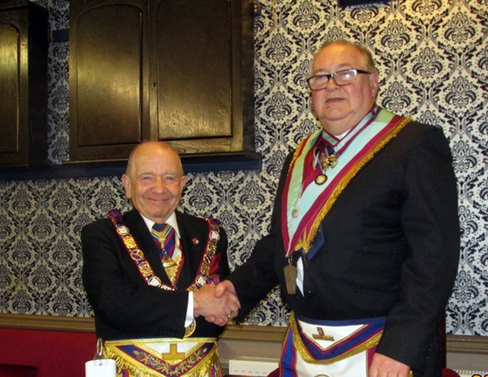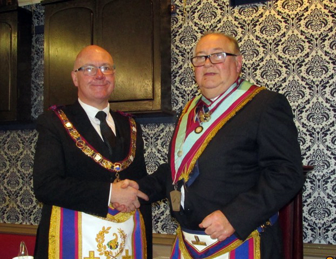 W Bro Steve Lyon then proceeded with the Installation through the inner workings. W/Bro Keith Walton then invested his IPM W/bro Roy Smith as IPM and thanked him for his assistance in gaining the chair of Coronation Mark Lodge. |