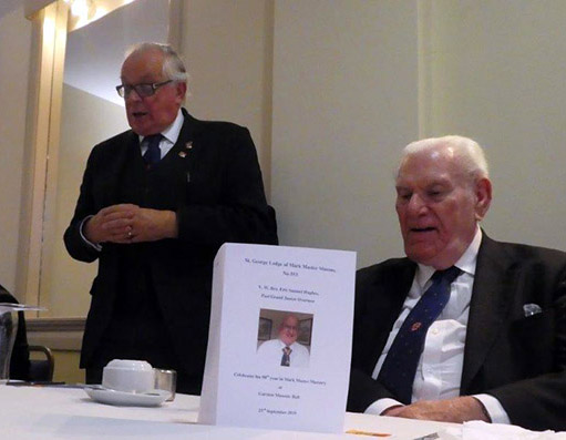 Eric has now completed 51 years in St George Mark Lodge, 14 years in Excelsior Mark Lodge, and 43 years in St George RAM Lodge. |