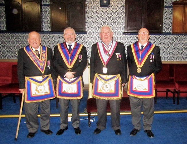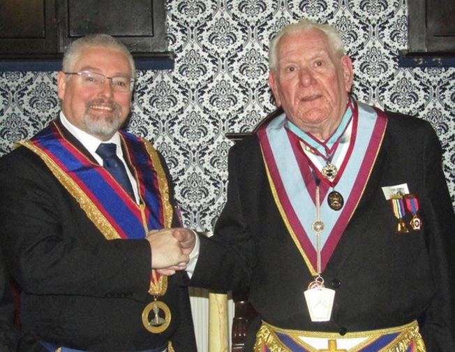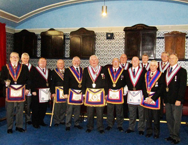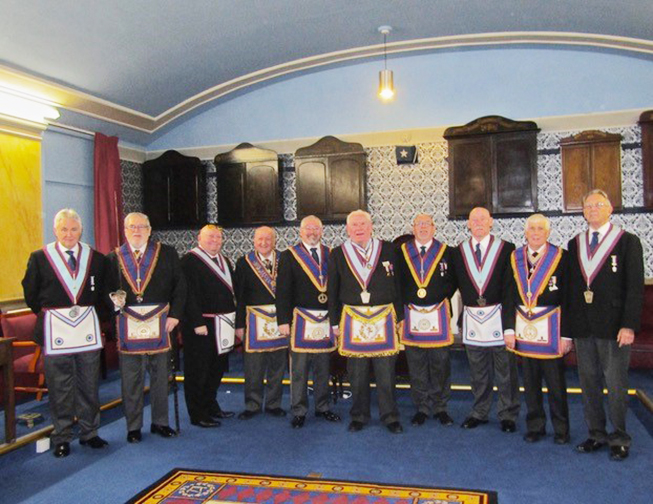 W. Bro Derek Horrocks then invested his IPM W. Bro Barry Tomlinson as IPM and thanked him for his assistance in gaining the chair of Excelsior Mark Lodge. |