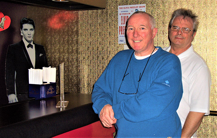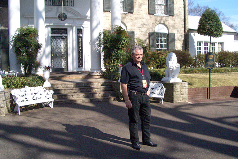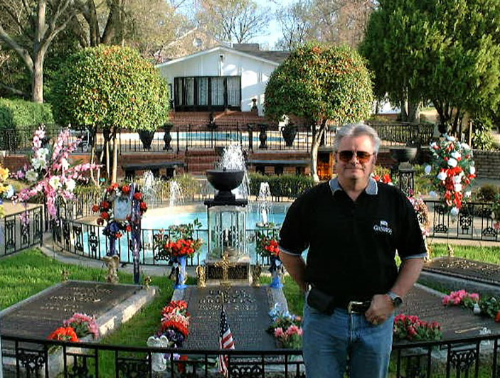 The next day was my Birthday so we were VIP guests to the estate and taken to places not usually seen, that was brilliant, in another episode I will tell you about our visits to Tupelo Mississippi where Elvis was born in a one room gun shack, the grave where his twin brother is buried, the store Tupelo Hardware where his mother bought his first guitar, (instead of the bicycle he wanted) the café where he used to hang out and Humes High school where he sang his first song in public it was a competition, that song was “Old Sheep”!! Our many visits to the Sun Studio in Memphis on Union Avenue where it all started, I recorded a couple of songs there. |