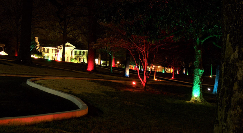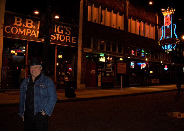 On arrival at Memphis a big guy was waiting for us (he looked just like B B King) in a Sun Studio’s mini bus to take us to the Heartbreak Hotel at the end of Lonely Street where we were staying as we neared Graceland which is opposite the hotel he asked if we had visited before, of course we said no, it was dark but he said I’ll pull up alongside so you can take a look over the wall. What a great site all the pathways are lit by small coloured lights leading to the house which is lit up the same, a great start to the holiday. |