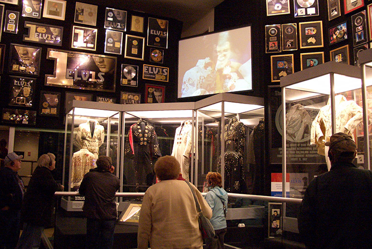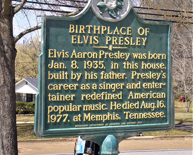 More Memphis Adventures, Beale Street home of the Delta Blues and being lucky enough to see B. B. King in his own night club, our many visits to the Sun Studio in Memphis on Union Avenue where it all started and recording a couple of songs there. our visits to Tupelo Mississippi where Elvis was born in a one room gun shack, the grave where his twin brother is buried, the store Tupelo Hardware where his mother bought his first guitar, (instead of the bicycle he wanted) the café where he used to hang out and Humes High school where he sang his first song in public it was a competition, that song was “Old Shep”!! I hope this report will be of interest to some of you, now just let the pictures transport you to Graceland the home off Elvis Presley. |