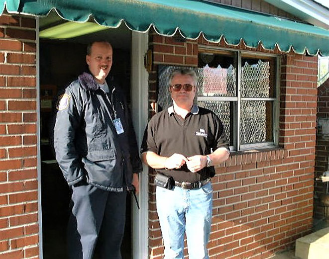 We talked about going to Memphis for many years to visit Graceland and finally decided to go on what became the first of many visits. Well the day finally arrived and off we set in a taxi, very excited, great, got inside the terminal building heading for the American Airlines desk to check in for the flight to Chicago, now you know my stories usually include a few what shall we say “cock ups” I thought I’ll take my trendy denim jacket off while were waiting but must take my glasses out of the pocket so I don’t damage them, ah disaster they weren’t there, how can I go without them, blind as a Bat for reading !! Now as Corporal Jones would say “Don’t Panic” now would I Panic, yes indeed, but with my razor-sharp logic I thought what about my Brother in Law who lives just down the road from Ringway. Tried the phone, held my breath and yes he was in and said he would come along and nip me home, whew, raced back to Urmston jumped out of the car, I didn’t even have to go inside, they were sat there on top of the gate pillar!! Got back in good time, checked in and went through into the departure area and took a big breath. To get to Memphis you have to fly to Chicago first which is a very big airport, ongoing through security the guard went behind a screen to look at his computer display on seeing what my job was when he came back he said “Austin if you have any problems or need any help whilst your visiting with us, do not hesitate to contact me, here is my card” I thought how good is that. |