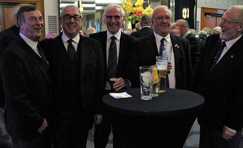 Always funny but never offensive, how can we ever forget the time at the Provincial Grand Lodge in Southport when he produced several masks he’d had specially produced of the PGM, Keith of course joined in as we all lined up for a “guess which is the real PGM” see the picture below. (it’s a good job we have a great PGM) |