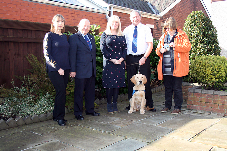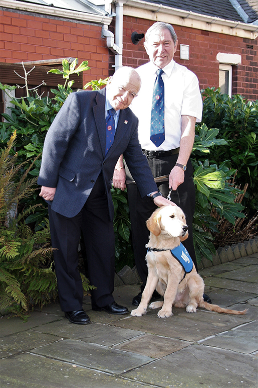 Following a telephone call to Peter a visit was arranged for Mark to be introduced to our Right Worshipful Provincial Grand Master Keith Alan Beardmore. On Thursday 6th February our Right Worshipful Provincial Grand Master along with Mrs. June Beardmore arrived at the home of Peter Green for a meeting with Lynne Whittaker and Mark accompanied by puppy training staff. Photographs were taken in the pleasant surroundings of Peters garden. An interesting discussion took place over tea and cakes Lynne and her staff explained the training programme for Mark, and indeed all Guide Dogs with Keith Beardmore explaining, in part, the structure of our Mark Masonic Charities. |
