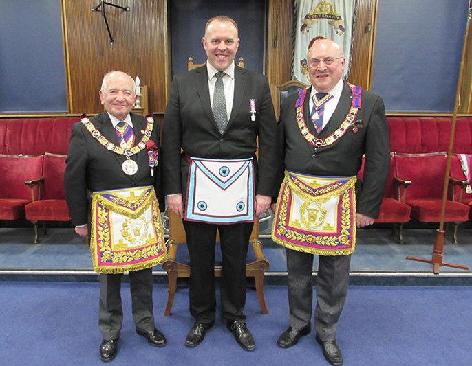 RW Prov. Grand Master Bro. Keith Alan Beardmore, W Bro. David Robinson WM Preston Mark |