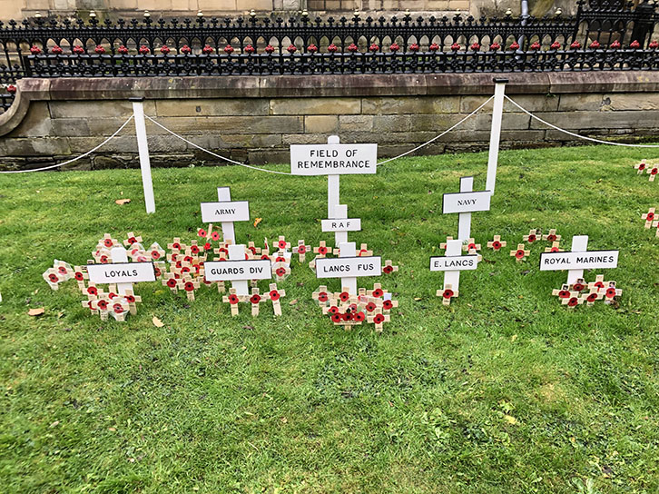 The usual large crowd was absent this year as I laid the wreath on behalf of the Mark Degree at the cenotaph in Wigan and stood in silence in respect to those who have fallen in conflicts around the world. |